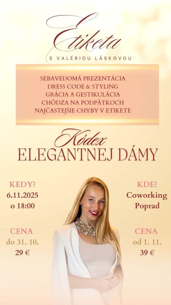 Zaujala vás téma Biznis etikety? Dajte mi vedieť – rada vám poskytnem viac informácií o pripravovanom kurze.